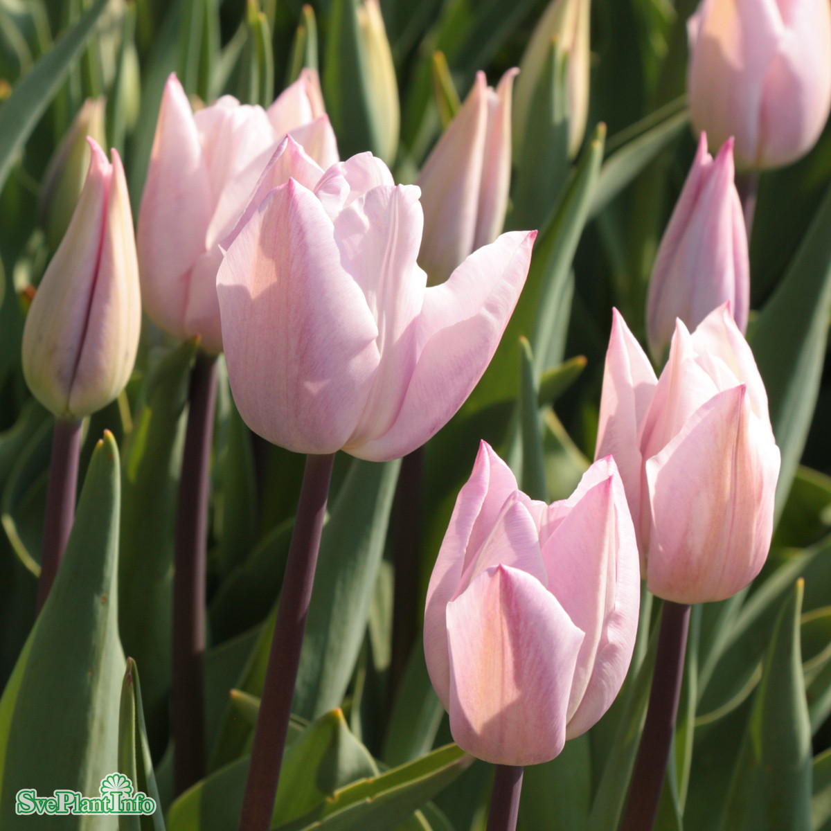 | Tulpanlök. Enkla, bägarformade, blekt lavendellika blommor i april-maj. Mörka stjälkar. Trivs i sol-halvskugga på väldränerad jord. Höjd 35 cm. |
